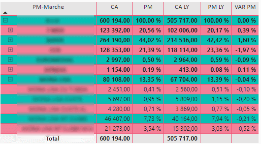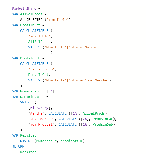 Calcul d'une part de marché basé sur une hiérarchie